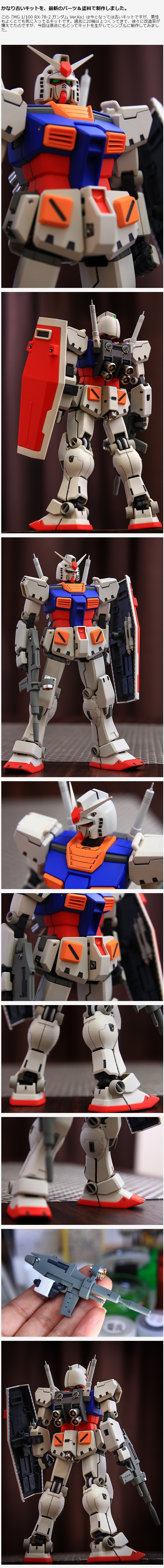 この「MG 1/100 RX-78-2 ガンダム Ver.Ka」は今となっては古いキットですが、素性もよくとても気に入ってるキットです。過去に20機以上つくってきて、徐々に改造率が増えてたのですが、今回は原点にもどってキットを生かしてシンプルに制作してみました。