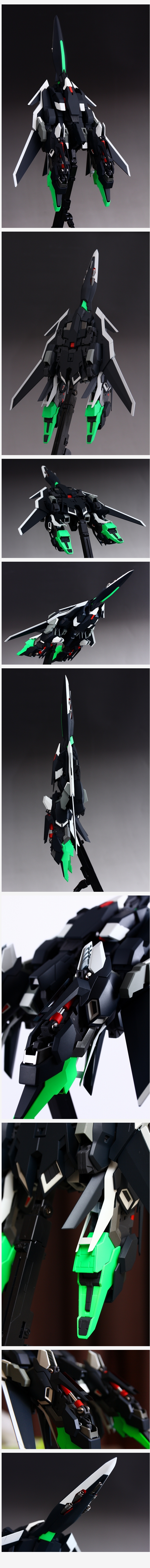 ヒザは切り欠きを大きく取ることで可動範囲を拡大、ウェーブライダー形態のシルエットを可能な限り薄くします。