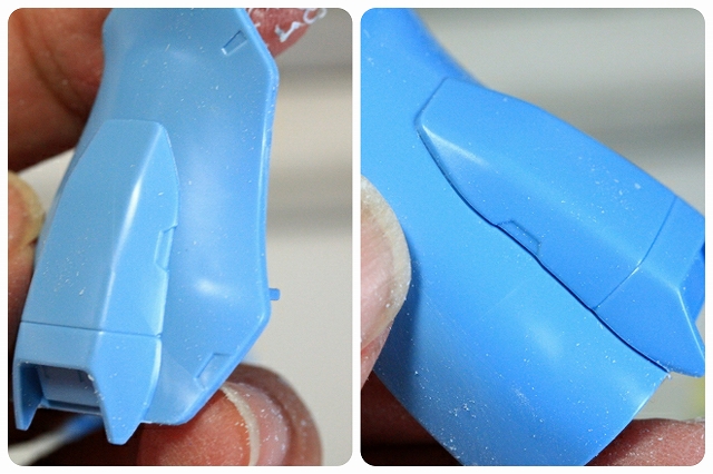 合せ目がバッチリ目立ちます。基本的な方法で合せ目消し。乾燥を待つ間に別の工作を進めます。