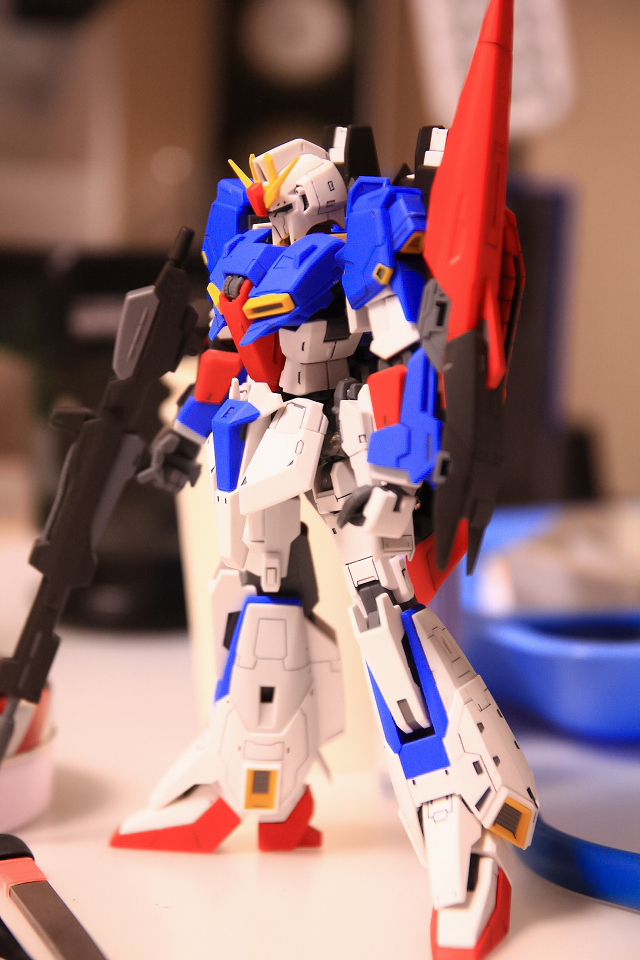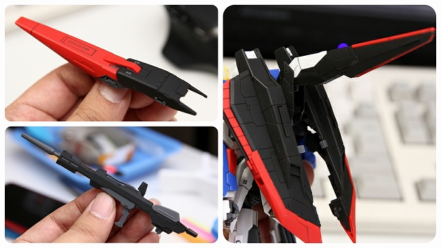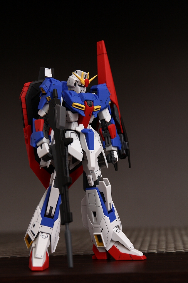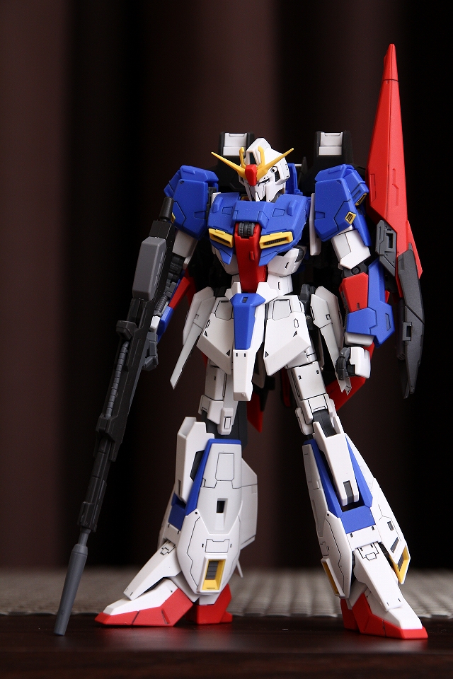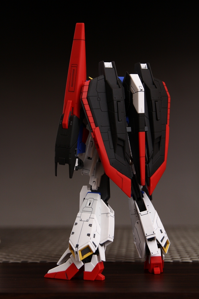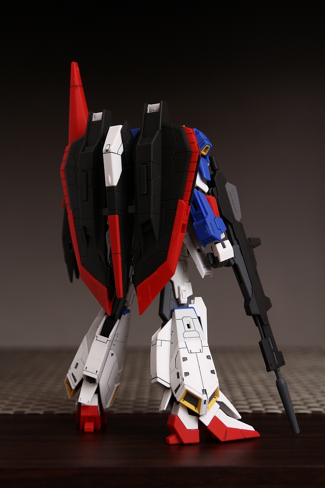 なおこのキットは変形機構を再現したため、関節の強度が足りずグラグラで自立しません。そこで今回はMS形態でしっかりポージングできるように、ヒザや腰などの関節を固定にて仕上げました。カッチリ立つのが気持ちがいいですね。