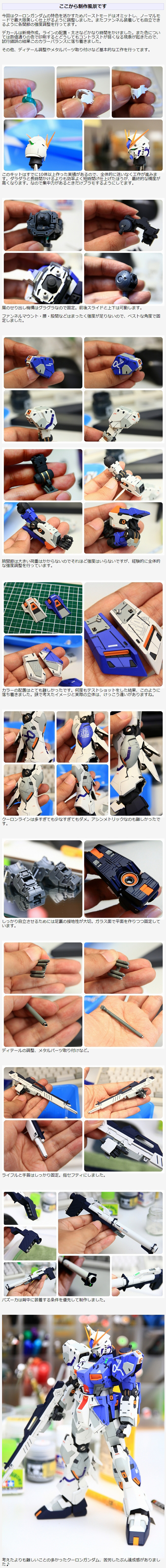 今回はクーロンガンダムの特色を活かすためバーストモードはオミットし、ノーマルモードで最大限美しく仕上がるように調整しました。またファンネル装着しても自立できるように各関節の強度調整を行ってます。