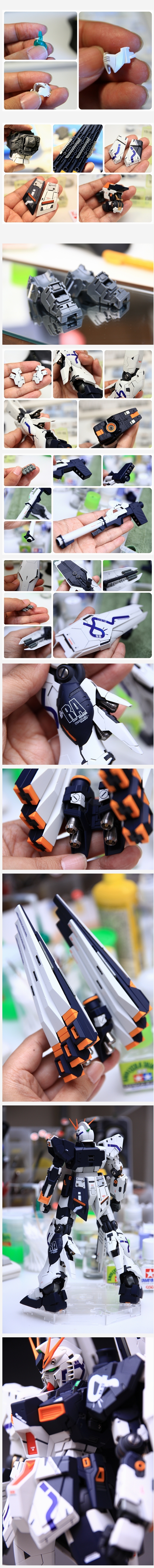 片持ちファンネルをウィングファンネル方式に改造。マウントの角度と強度を調整。黄色いパーツのスナップフィットがキツすぎるせいでファンネルが歪む不具合を調整。