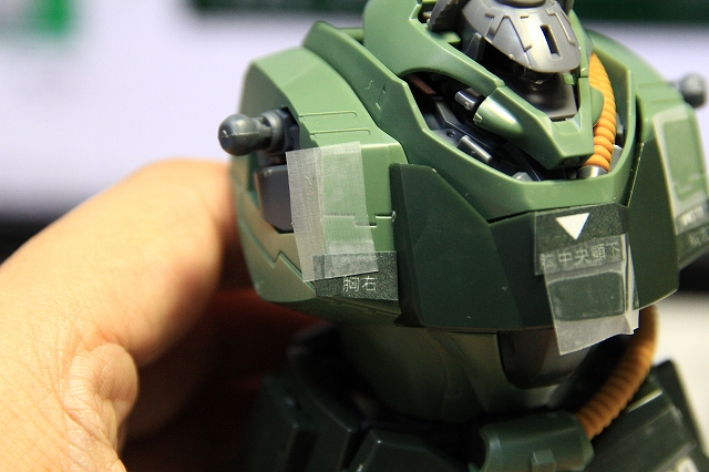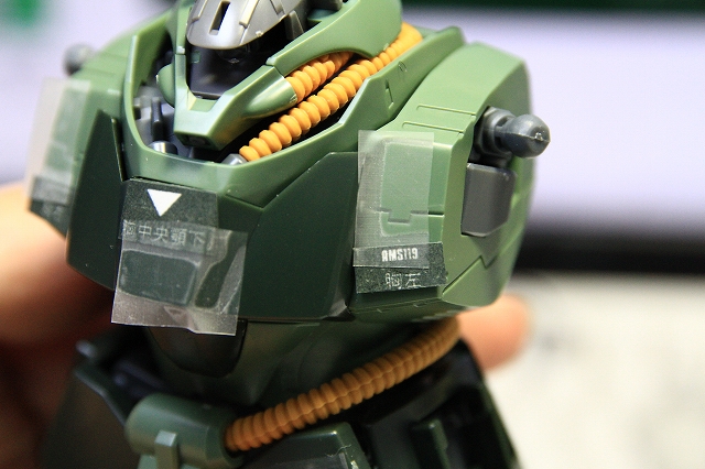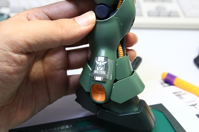 デカールの内容は青いレズン・シュナイダー仕様ですが、サンプルには手持ちキットの緑ギラドーガを使用させていただきました。