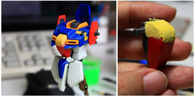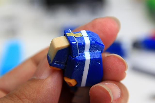 たぶん一番の候補である、MGゼータプラスの頭部。おでこ部分を切り取ってVer.1と移植してみます。