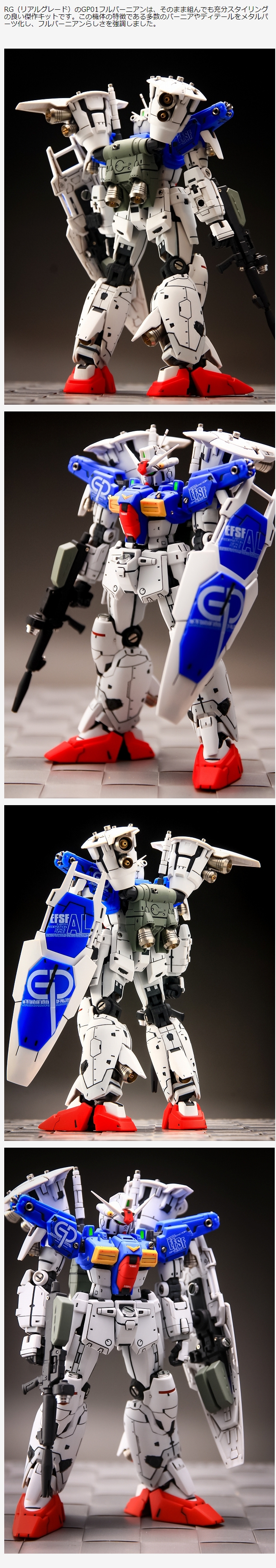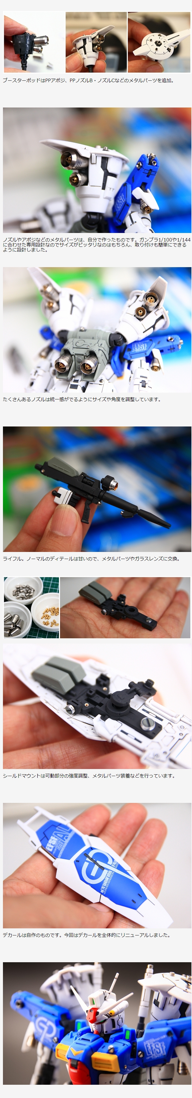 RG(リアルグレード)のGP01フルバーニアンは、そのまま組んでも充分スタイリングの良い傑作キットです。この機体の特徴である多数のバーニアやディテールをメタルパーツ化し、フルバーニアンらしさを強調しました。