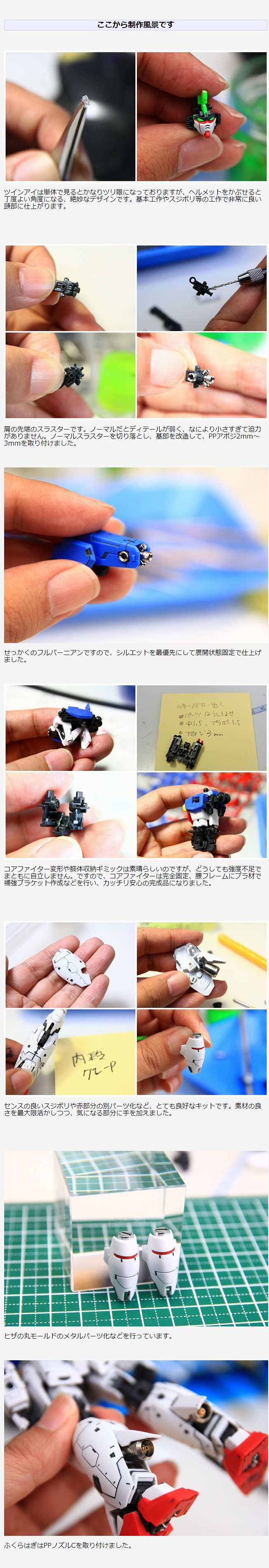ツインアイは単体で見るとかなりツリ眼になっておりますが、ヘルメットをかぶせると丁度よい角度になる、絶妙なデザインです。基本工作やスジボリ等の工作で非常に良い頭部に仕上がります。