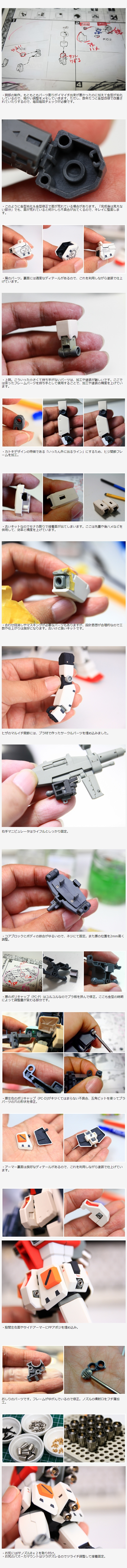 ・腕部の制作。もともともパーツ割りがイマイチ出来が悪かったのに加えて金型が劣化しているので、細かい調整をメモしていきます。ただし、数年たつと金型改修で改善されていたりするので、毎回毎回チェックが必要です。