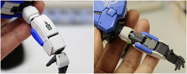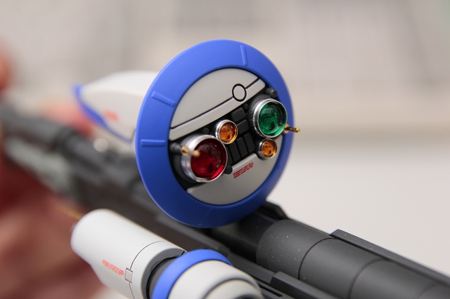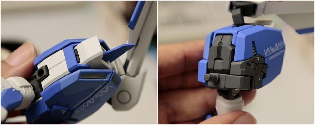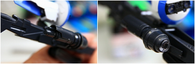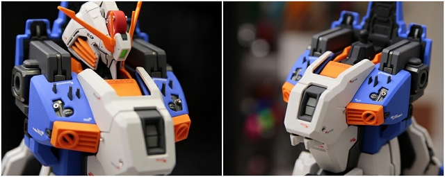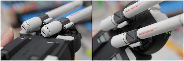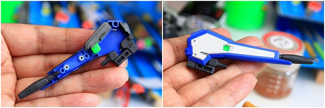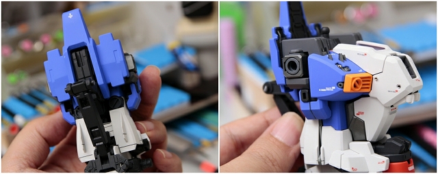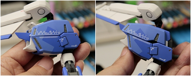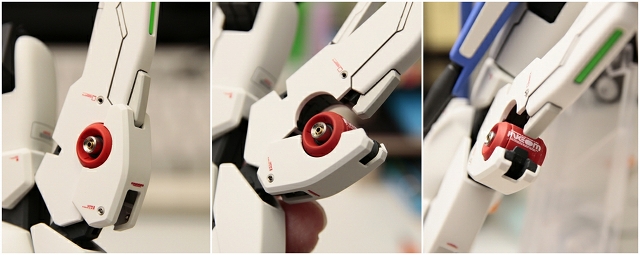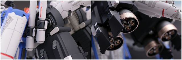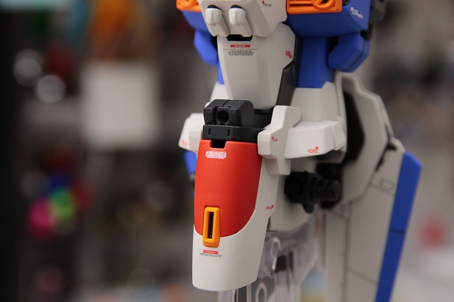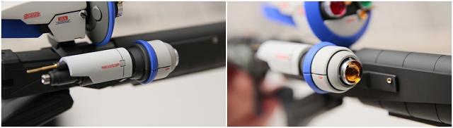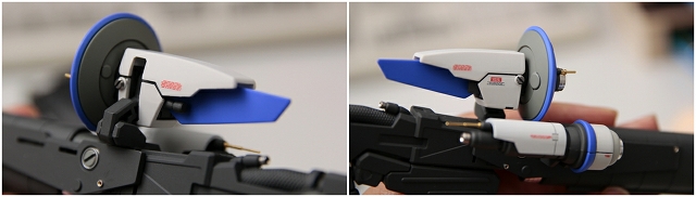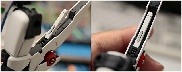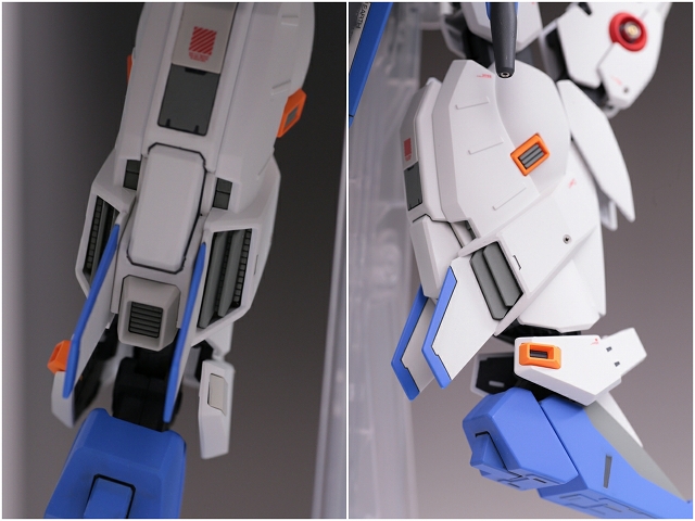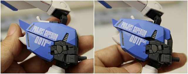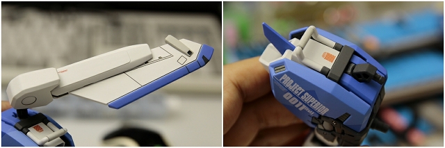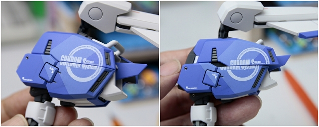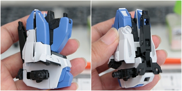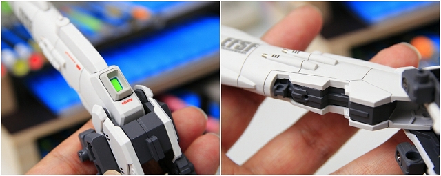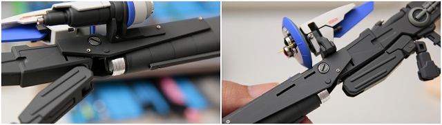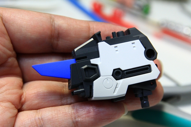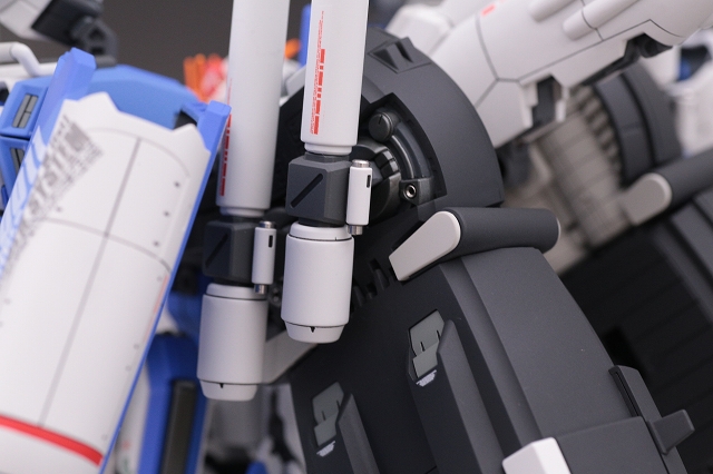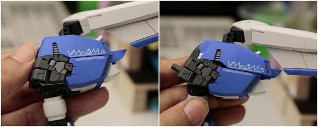 腰のビームカノン。以前は白一色のモナカ割でしたが、青白の成型色になりました。嬉しい変更。