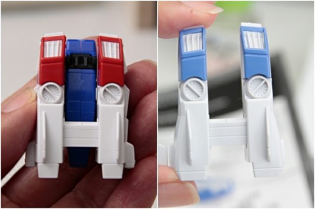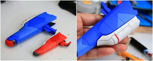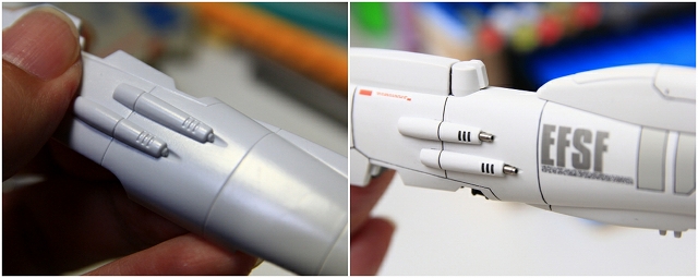 トリコロールの赤は、リファイン版の青に変更になりました。またコアファイターの下半分がボリューム増大しています。