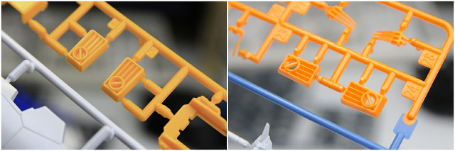 胸の円形ダクトが貫通になりました。イエローの成型色は、やや赤みと彩度が上がった色になりました。
