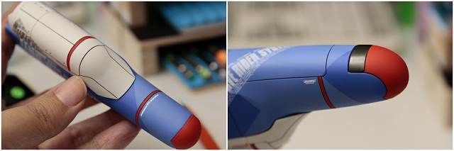 ヒザ裏のビームサーベル。数色で塗り分けを行いました。