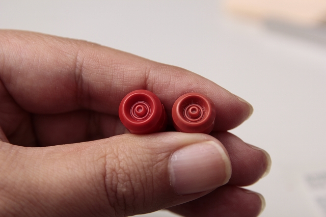 赤の成型色はかなり彩度が落ち着いた感じになってます。塗装する場合、赤の彩度を上げるか落とすかは、バランスや好みで判断するのが良いと思います。