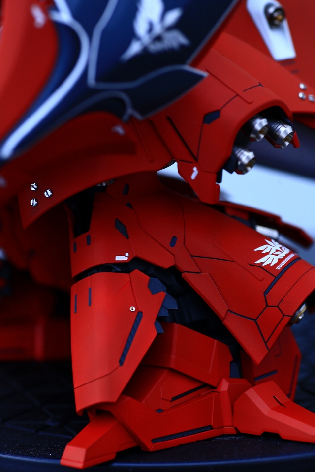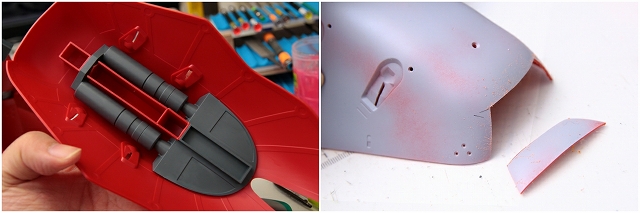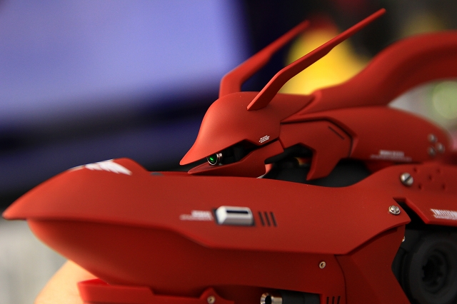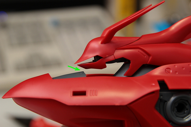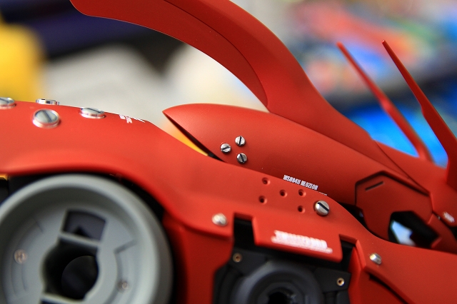 全体的に曲面デザインなのに、フロントアーマーだけ直線でしかも鉄板リベット打ちみたいになってます。これがとても違和感。たしかに元のデザインもこれに近いのですが、なにか微妙な違いでぜんぜん別物になっています。