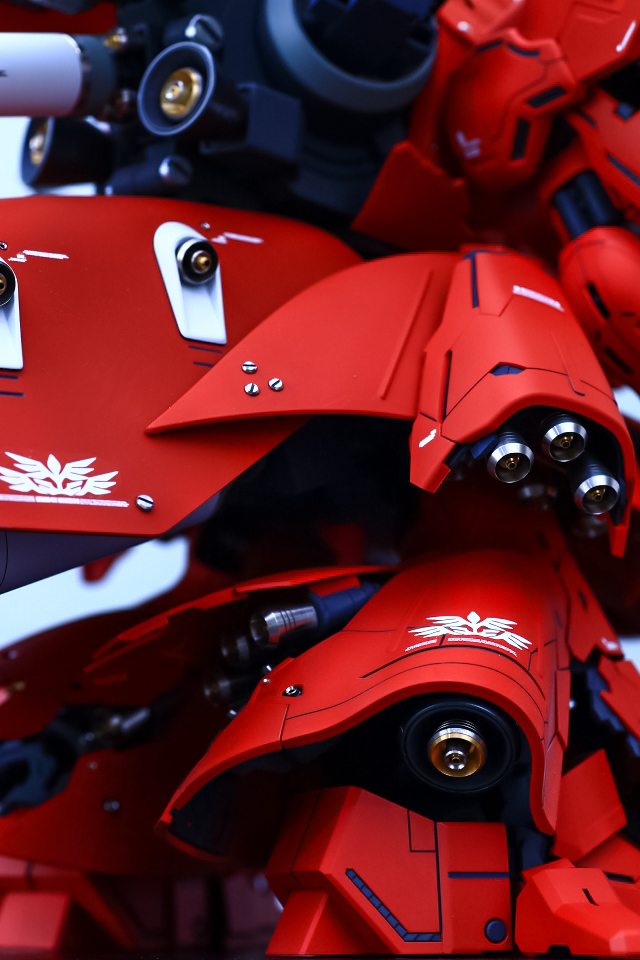 これはノーマルの肩ジャケットです。単体で見ると問題ないのですが、本体に装着すると他のラインとのつながりがなく、取ってつけたような違和感が生じます。またこのパーツは可動しないので、好みの角度に調整できないのもつらいです。