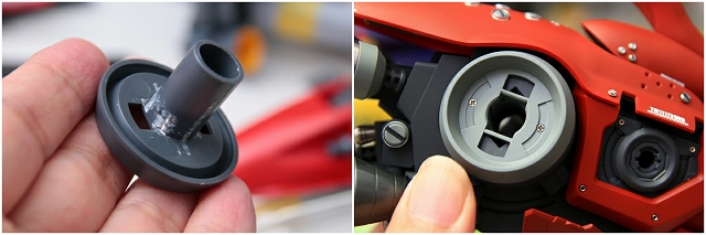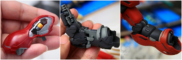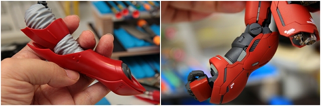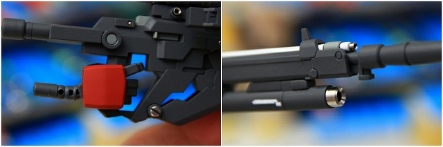 マニピュレータもしっかりグリップできるものに変更。手首にオフセットがついているのでライフル保持が改善されます。たったこれだけの工夫ですので、ガンプラもこれが標準になったらいいのになぁ。
