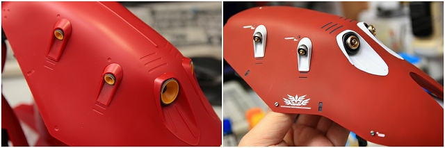 胸中央下と脇腹などにスタビライザーを追加。メタルパーツも各所に追加。