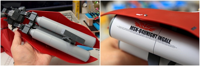 背中に付くプロペラントタンク。キットのタンクは細すぎ長すぎ。太くするか短くしたほうがバランスがとれます。