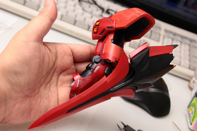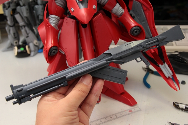 で、いきなり正直な感想を申しますと、同じRE100でもGP04は3500円でMGを超えるクオリティなのに、それと比べて8800円のナイチンはどこをとってもキビシイです。それだけに改造するにつれどんどん良くなっていくので、作りがいがありました。