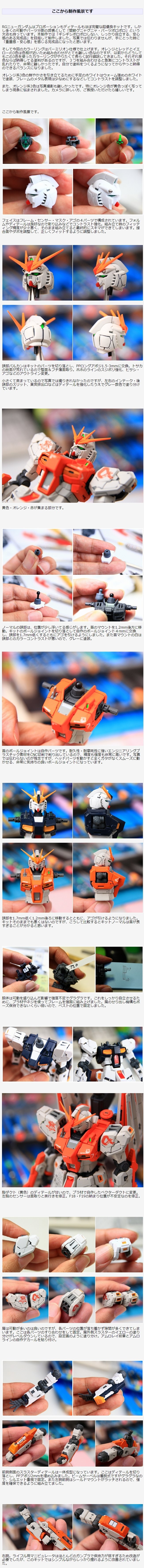 オレンジ系3色の鮮やかさを引き立てるために手足のホワイトはウォーム強めのホワイトで塗装、フレームのメタル表現は少なめにするなどしてコントラストを調整しました。