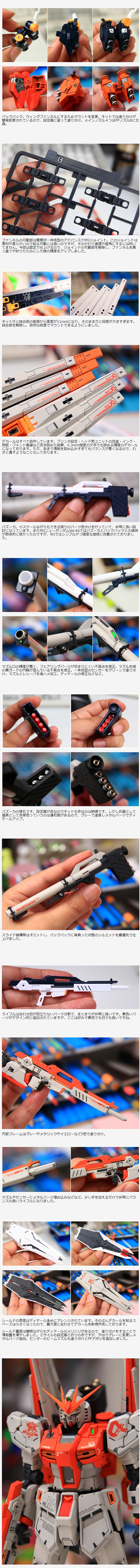 マズル口の精度が悪く、フェアリングパーツが収まりにくい不具合を修正。マズル先端の黒ガードの内輪が歪んでいる不具合を修正。一体成型のセンサーをグリーンで塗り分け。マズルとレシーバを後ハメ加工。ディテールの修正などなど。