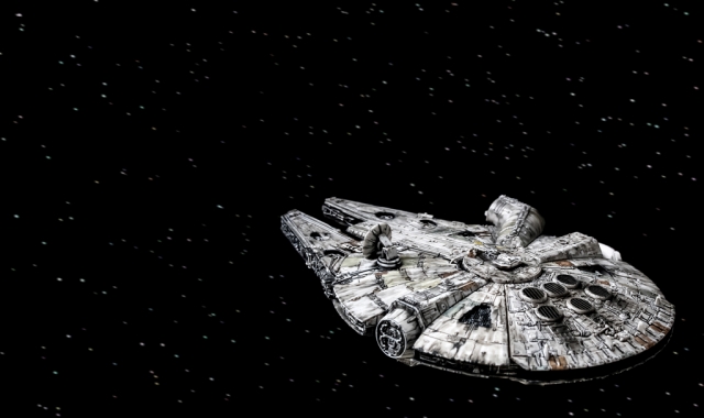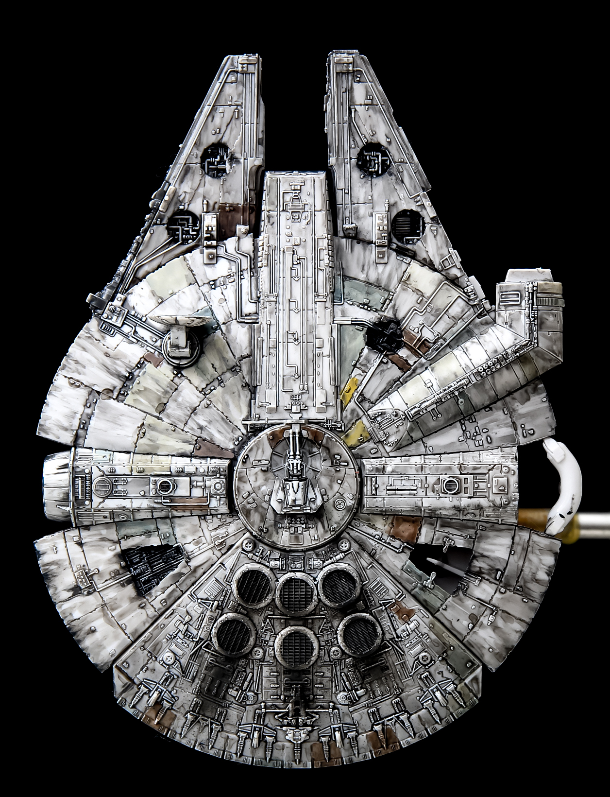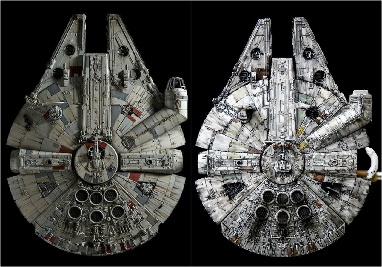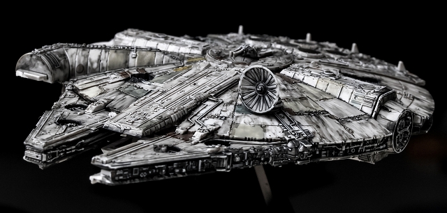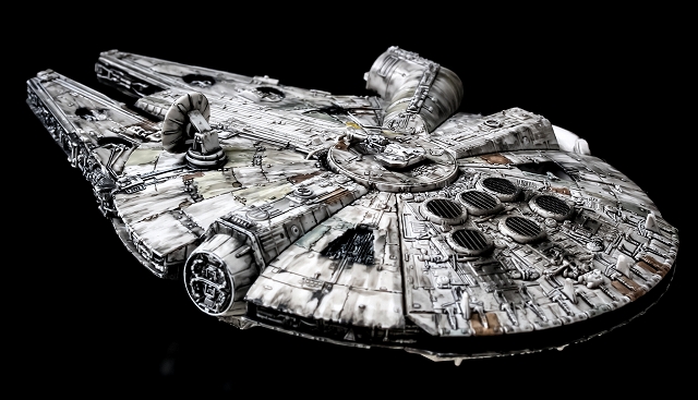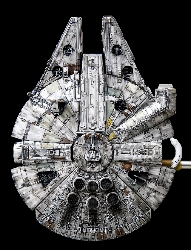 「劇中を再現」でもなく「プロップを再現」でもありません。僕のイメージしてるファルコン号を再現しました。かなり思い出補正がかかっていて、こくらい汚れているイメージです。