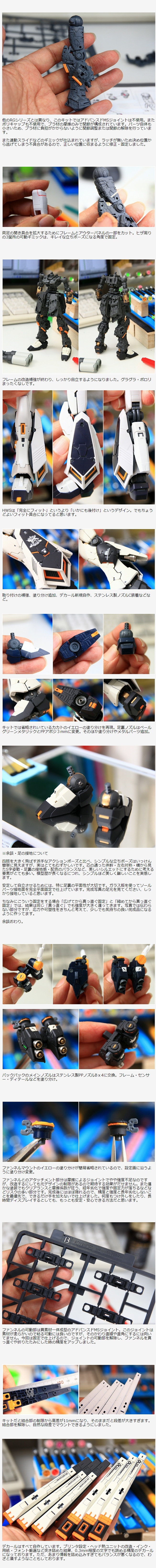 近年のガンプラは可動を多くしたり細かいパネル分割など、より高密度な進化をしています。しかしその弊害として「関節グラグラ・パーツポロポロ」という弱点があります。そこで脆弱な部分を補強し、美しい立ちポーズでしっかり自立する完成品を目指して制作しました。