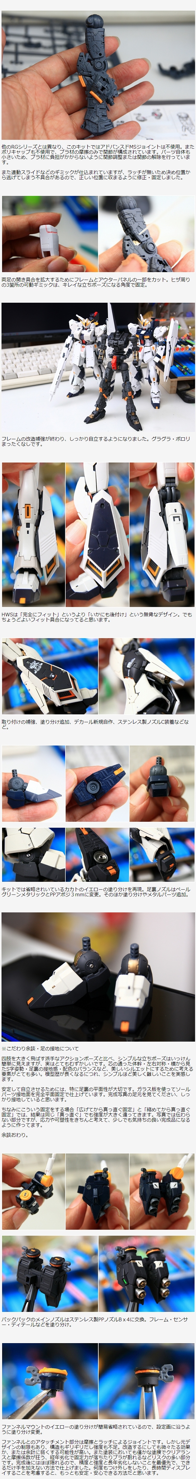 近年のガンプラは可動を多くしたり細かいパネル分割など、より高密度な進化をしています。しかしその弊害として「関節グラグラ・パーツポロポロ」という弱点があります。本制作ではそういった脆弱な部分を補強し、美しい立ちポーズでしっかり自立する完成品を目指して制作しました。
