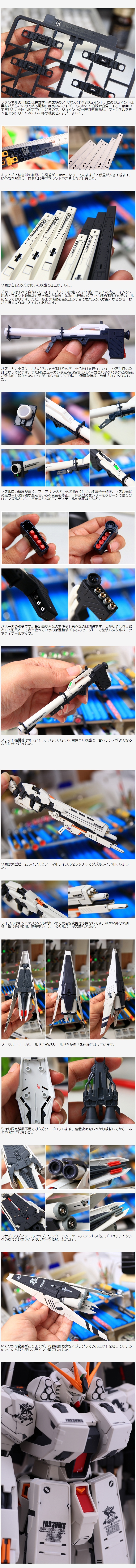 マズル口の精度が悪く、フェアリングパーツが収まりにくい不具合を修正。マズル先端の黒ガードの内輪が歪んでいる不具合を修正。一体成型のセンサーをグリーンで塗り分け。マズルとレシーバを後ハメ加工。ディテールの修正などなど。