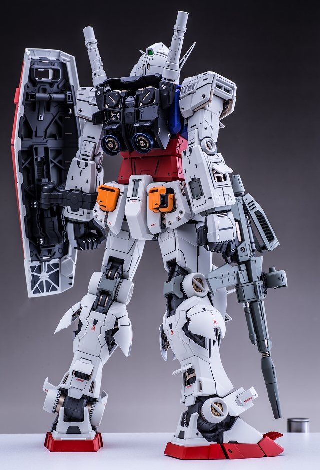 最近のガンプラは細かくパネル分割したりのハイディテールが多いですが、このノッペリした感じは「初代ガンダム」のイメージにピッタリで良いですね。ここからさらに足しても引いても良いイメージができる、PGUGは良いキットです。