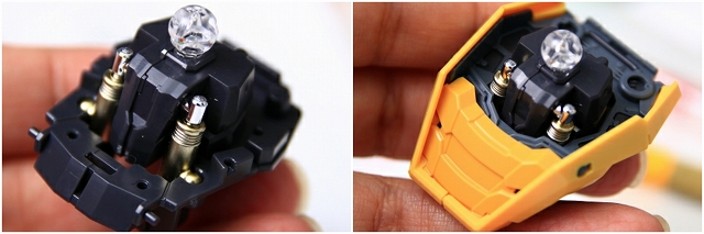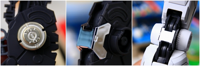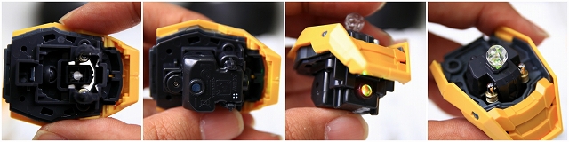 首の裏面にはLED発光ユニットが装着されます。首のボールジョイントは光を通すためにクリアーパーツです。
