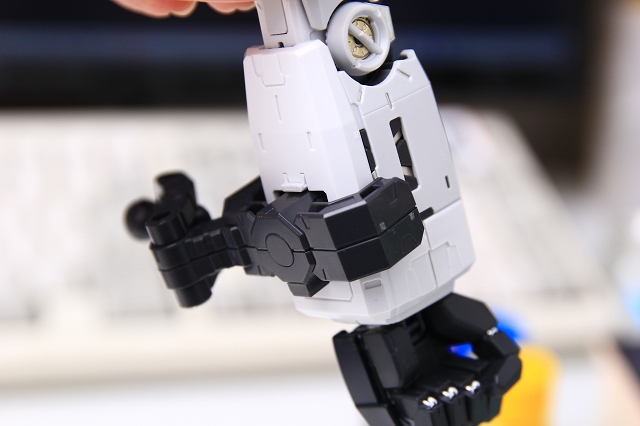 ずいぶん検証しましたが、この可動の必要性がどうしても分からなかったので、まっすぐで固定にしました。芯のフレームがアドバンスドMSジョイントで接着ができず、かつ肉厚もないので強度も足りない。ごく細いネジを数カ所固定することで解決させました。