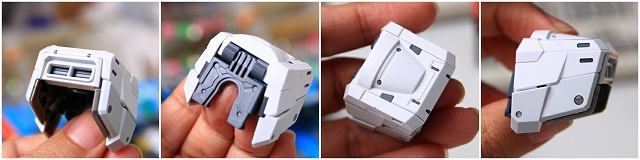 股間の連邦マーク部分は「大気圏突入」で使用した冷却機構が再現されてます。赤部分前方を押し下げれば開きます、閉じる時は上面のグレーの部分を指で押し下げると閉じます。