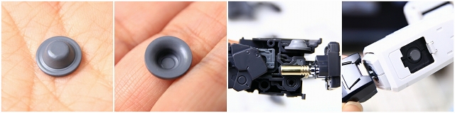 金属を皿状にプレスしたパーツは、前腕に組みこまれ、磁石式シールドマウントにラッチされます。ただし回転方向に固定が無いので、しっかり接着すると強度が上がります。