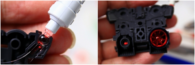 このキットは全体的に素晴らしいキットなのですが、そのクオリティに比べると発光ギミックについては「うーん・・・」と言わざるを得ません。決してキットを咎めているのではなく、発光ギミックで困っている人の参考になれば、今後の改善につながれば、と思って正直に書いています。