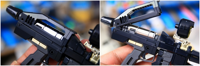 銃底(レシーバーカバー?)はスライド開閉。写真ではわかりにくいですがカバー前端部分も少し開閉します。