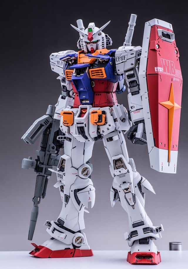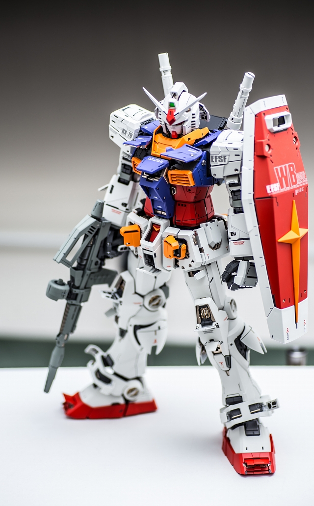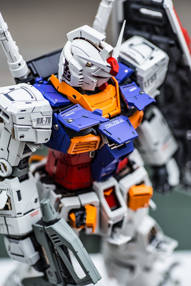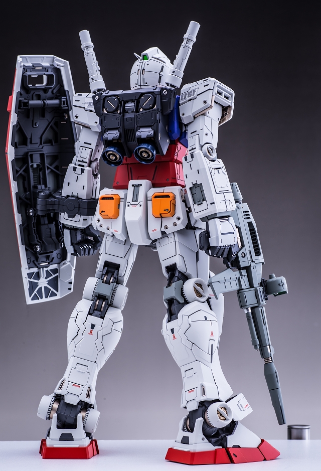出来上がった完成品を眺めていると、大きいスケールならではの迫力と間延させない適度なディテールがあり、バランスが非常に充実している。また一時的な流行に流されずファーストガンダムの原点を尊重した心意気、なおかつ技術面では最新を取り入れていて、とても良いキットだと実感しました。