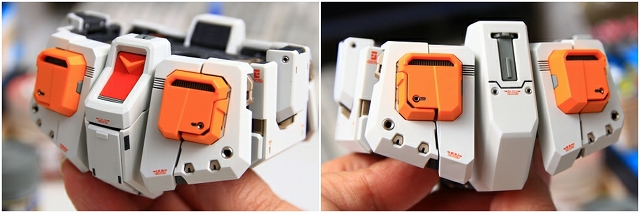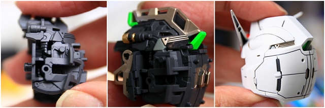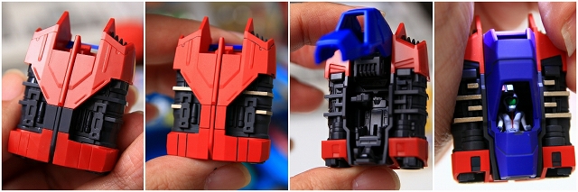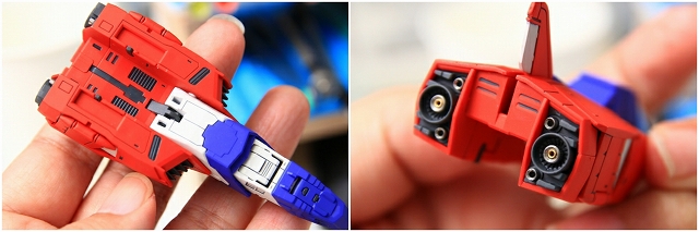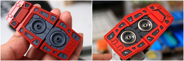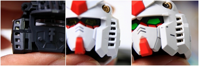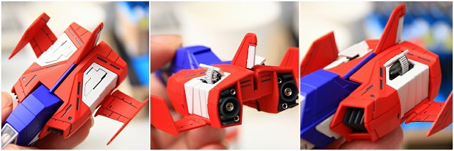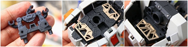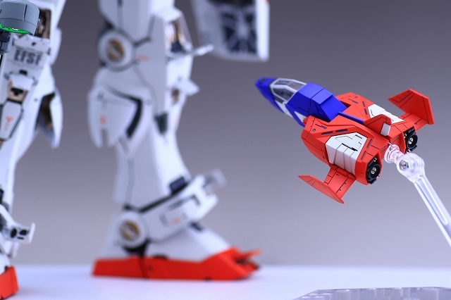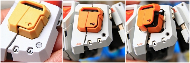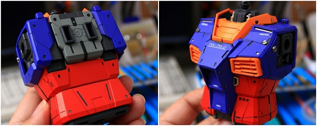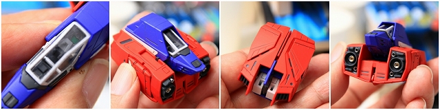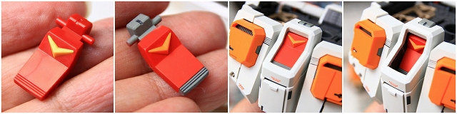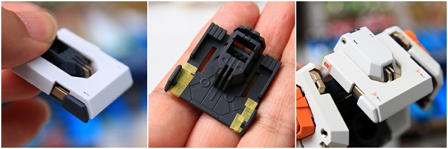 変形してコアブロックに。写真では見にくいですが、90度回転してるアムロのヘルメットフェイスが見えます。