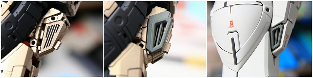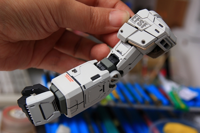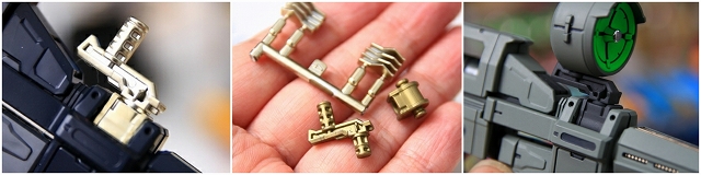 クロームメッキや薄金メッキは超合金オモチャっぽい質感なので、メッキを落としてグレーやゴールドに再塗装。成形の甘いディテールは、マイナスモールドやPPアポジなどのメタルパーツに置き換え。肘後ろ側のカバーは、複雑かつ良い感じのパーツ構成。微調整だけ加えています。