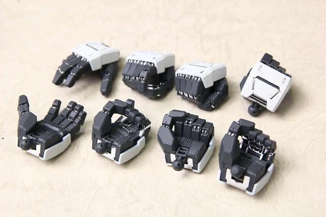 このキットではマニピュレータはまったく可動せず、固定式の手首が8種類入ってます。