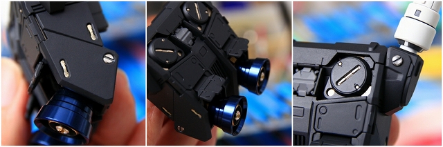 ガンプラ初(?)のメタルノズル。たぶんアルミにブルーのアルマイト、重量感のあるメタリックでとても良いコーティングです。