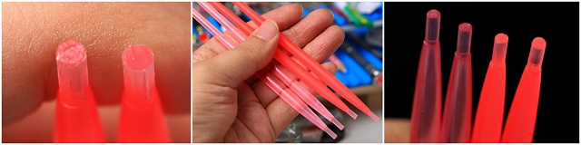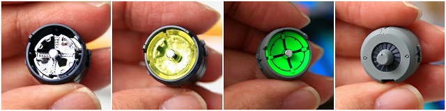 写真左、中央サーベルだけLED発光です。上段は無発光ですが光量最適化したので光を拾ってます。下の無加工無発光サーベルはあきらかに集光率低い。大改造をせず、基礎的な加工だけで発光力アップできました。