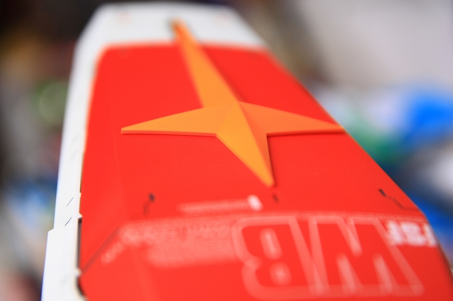 キットのクリアーレッドパーツは取り外し、PPノズルAを内蔵しました。ほぼ無加工、接着だけでピッタリフィットしました。