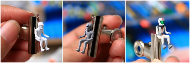 脇腹のパーティングブロックをなめらかに。太もものスキマを3Dで彫り込み。ヘルメットの中をくり抜き。などなど。