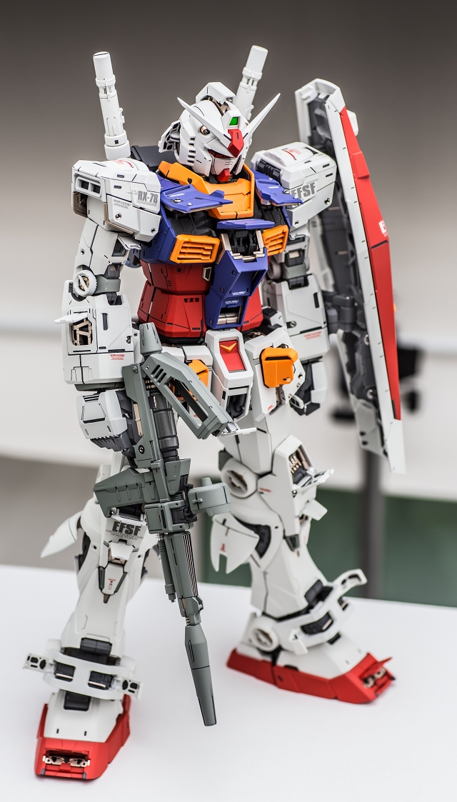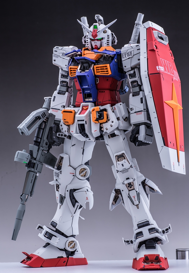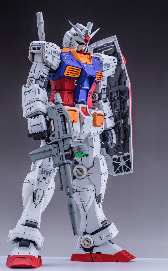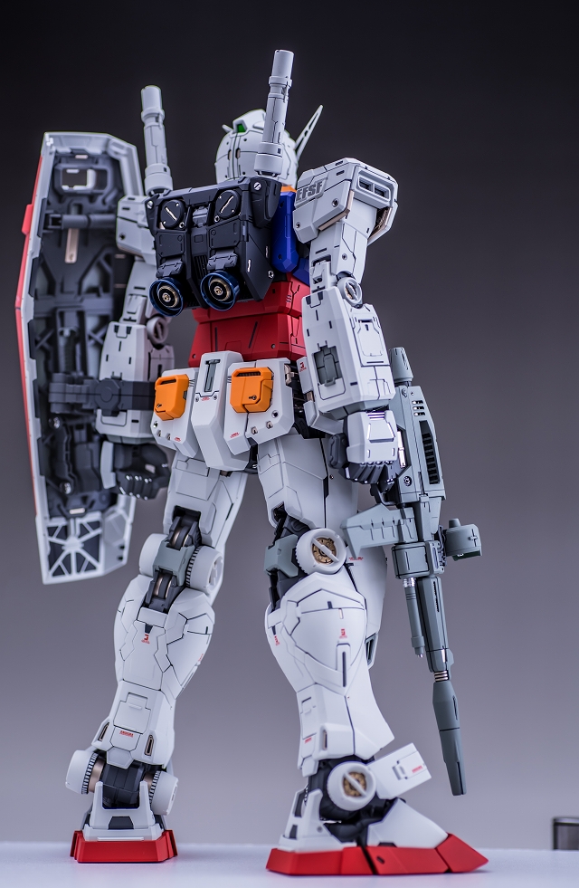 出来上がった完成品を眺めていると、大きいスケールならではの迫力と間延させない適度なディテールがあり、バランスが非常に充実している。また一時的な流行に流されずファーストガンダムの原点を尊重した心意気、なおかつ技術面では最新を取り入れていて、とても良いキットだと実感しました。