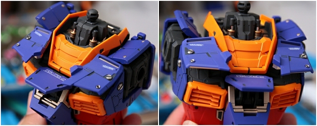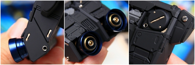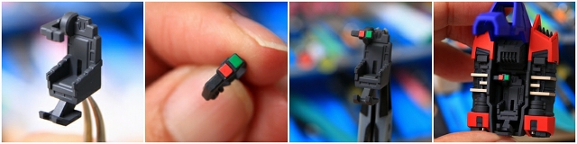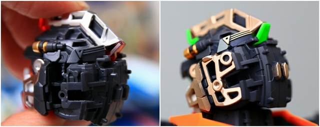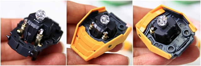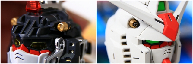 まず頭部の発光についてです。LEDユニットは首の下の胸のあたりに位置します。LEDの光は喉・頭部のクリアーパーツを通り、ツインアイとセンサー前後を光らせます。