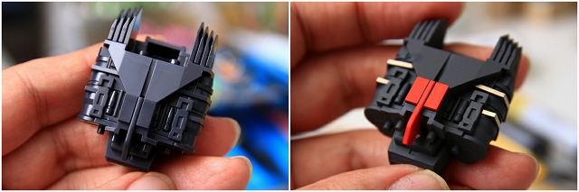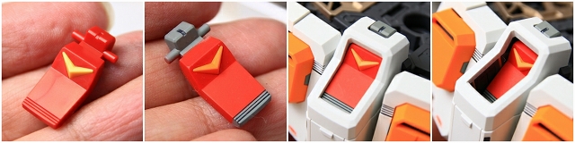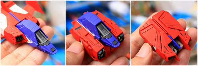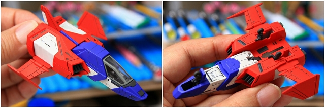 基本的な変形構造は近年のコアファイターと同様ですが、機種のスライド可動が独特で内部構造を知らないと変形が難しい。スムーズに変形でるように、可動部分の加工とグリスアップを行いました。