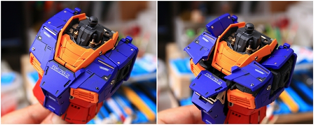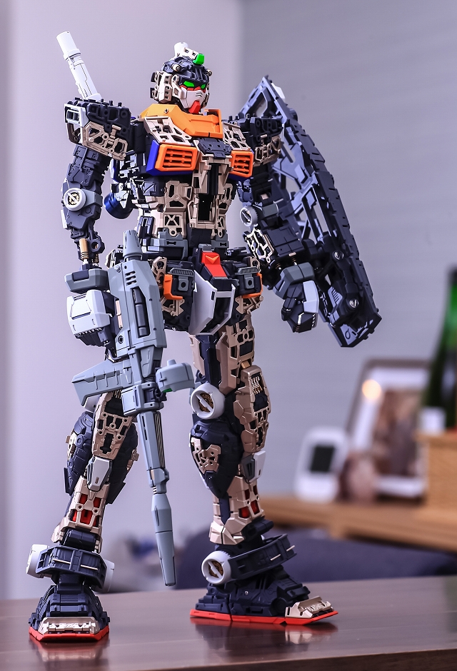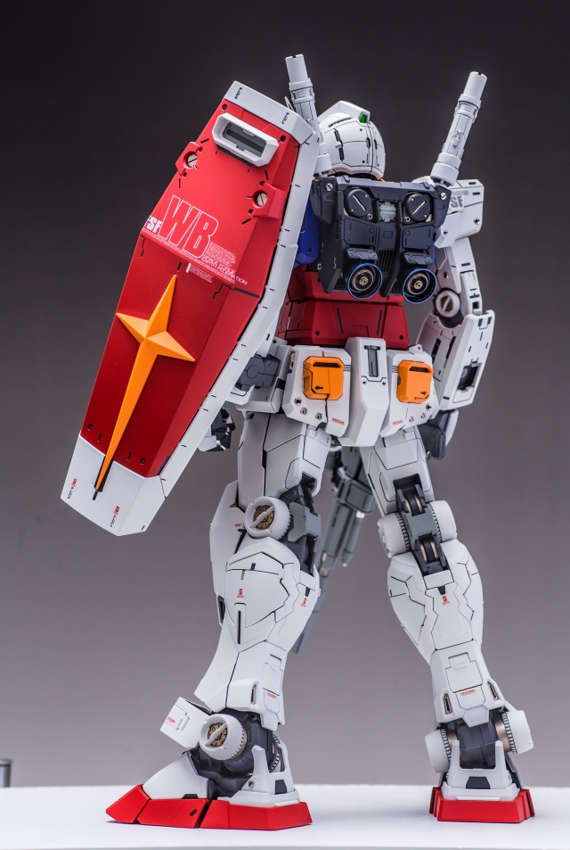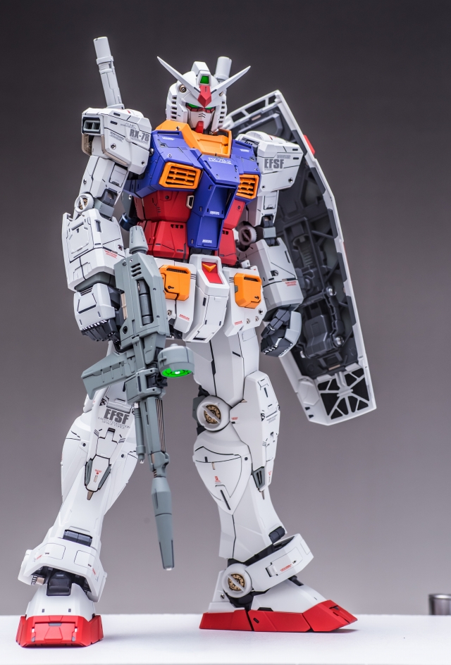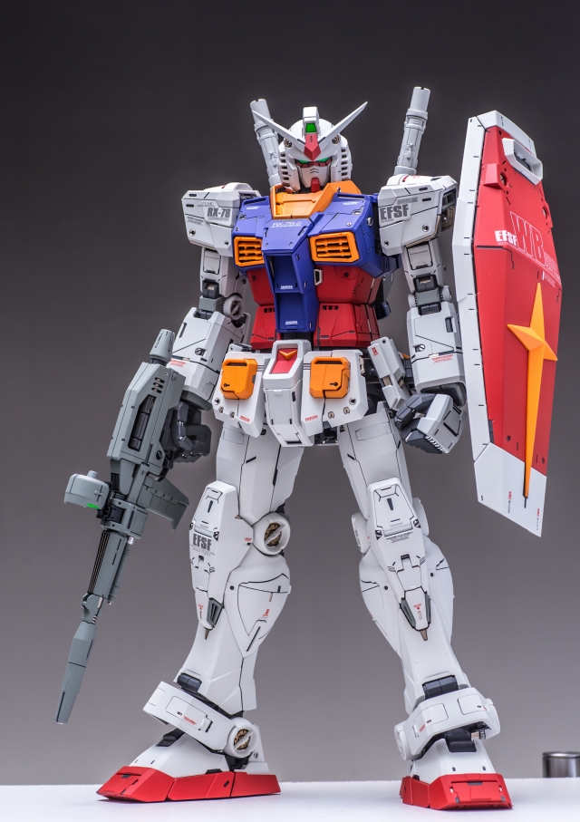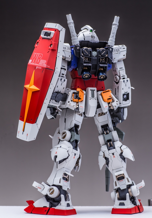 出来上がった完成品を眺めていると、大きいスケールならではの迫力と間延させない適度なディテールがあり、バランスが非常に充実している。また一時的な流行に流されずファーストガンダムの原点を尊重した心意気、なおかつ技術面では最新を取り入れていて、とても良いキットだと実感しました。