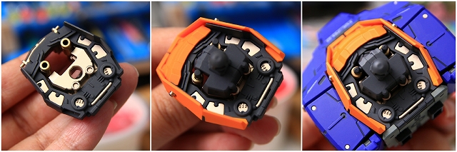 基本的な変形構造は近年のコアファイターと同様です。しかし機種のスライド可動が独特で、内部構造を知らないと変形が難しい(知っていても難しい)。簡単スムーズに変形でるように、可動部分の加工とグリスアップを行いました。