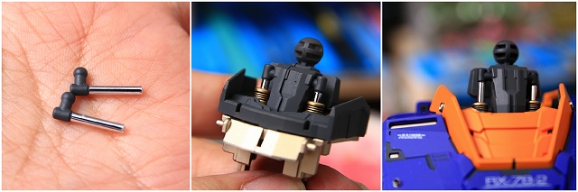 ずいぶん検証しまいたがこの可動の必要性が分からなかったので、まっすぐで固定にしました。芯のフレームがアドバンスドMSジョイントで接着ができず、かつ肉厚もないので強度も足りない。ごく細いネジを数カ所固定することで解決させました。