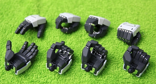 このキットではマニピュレータはまったく可動せず、固定式の手首が8種類入ってます。